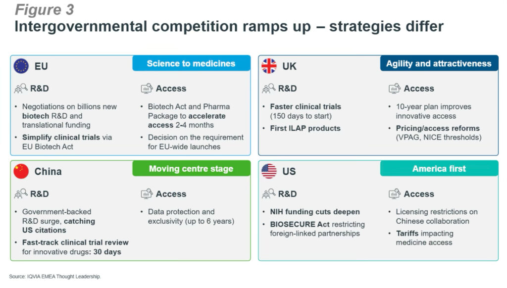 Globale Zusammenarbeit weicht zunehmend konkurrierenden Blöcken, da Regierungen ihre Strategien neu ausrichten, um eine Führungsrolle in den Life Sciences zu sichern. Dieser Wandel definiert Anreize neu, beschleunigt regulatorische Reformen und gestaltet weltweit Investitionsprioritäten um.
